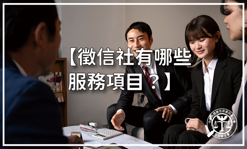 徵信社就好像漫畫《銀魂》裡的萬事屋,只要你有需求,向他們提出,一般來說都可以接受委託,民眾最直接聯想包含外遇捉姦、尋人查址、商業調查等,但實際上,還有許多你意想不到的事項包含在徵信社的業務裡,包括:感情諮詢、感情挽回、感情破壞、代客出氣、代課打人、討回債務、手機查地址、反追蹤、反徵信等。