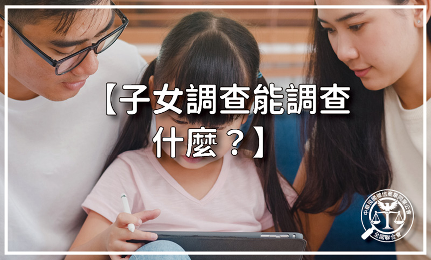 子女調查包括:子女行蹤、交友狀況、經濟狀況等,如果委託人需要,徵信社也能透過調查找出子女離家出走的癥結點,偕同專業的諮商師進行幫助,讓離家出走的孩童回歸家庭